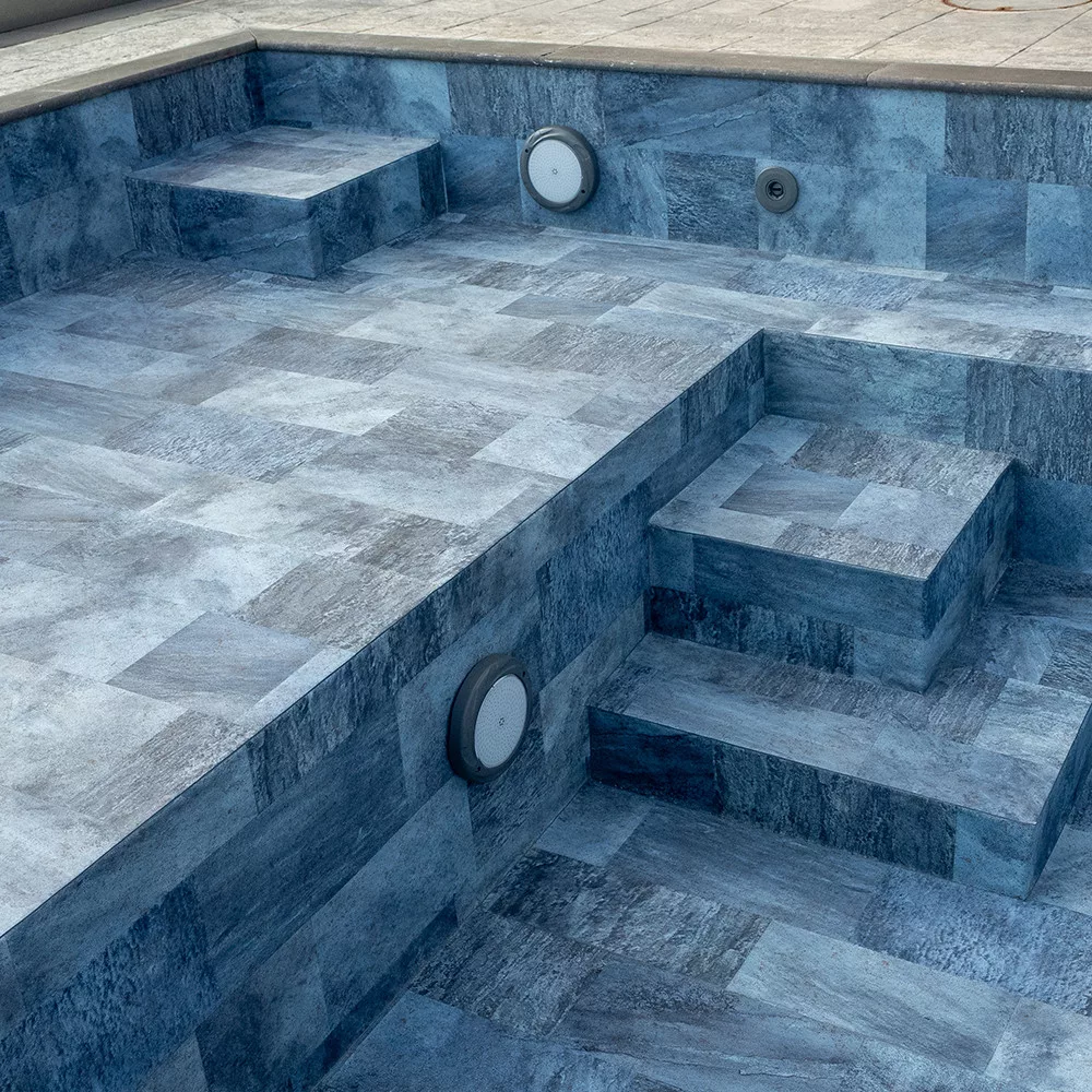 40 × 20 cm-es, kőhatású lapokból kialakítva ez a medencefólia a medencét luxus ékkővé varázsolja, amely minden pillantásra eleganciát és életteliséget sugároz.